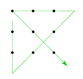 El problema de los 9 puntos plantea el reto de conectar todos los puntos únicamente con 4 líneas sin levantar el lápiz del papel (o el dedo de la pantalla en este caso). Intenta solucionar el problema…